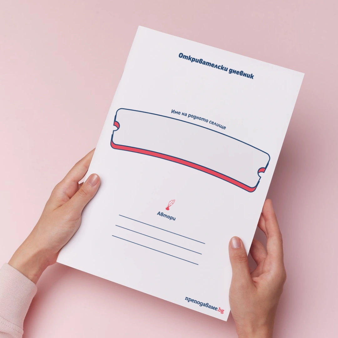 • “Вземете заглавната страница на своя дневник. В полето „Име на селището“ напишете красиво и цветно името на родното си място – можете да използвате различни цветове, украси или малки рисунки около буквите. В полето „Автори“ напишете своите имена.